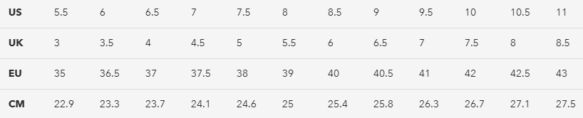Womens (if you are in between sizes, it is recommended to go up 1/2 size)